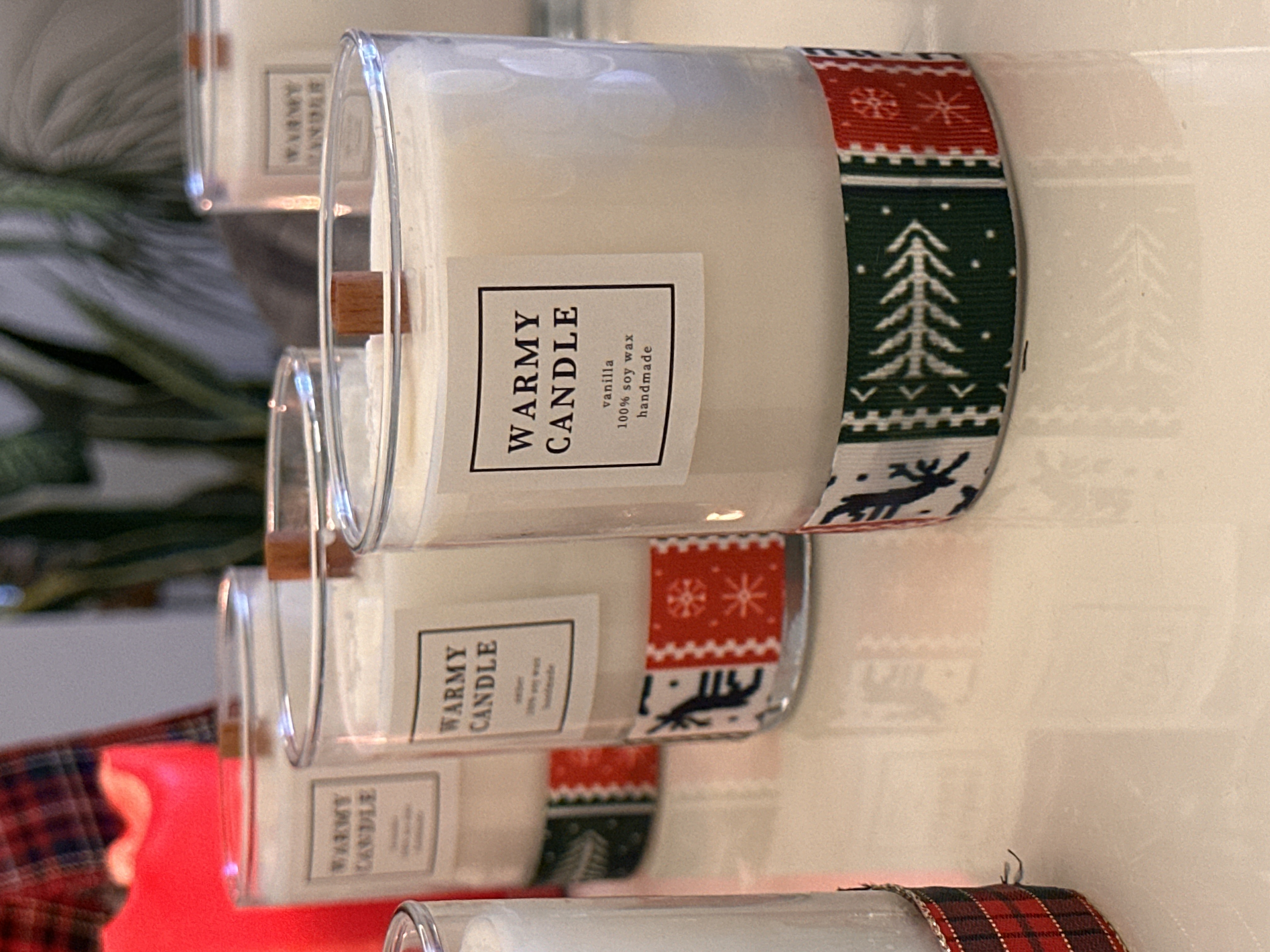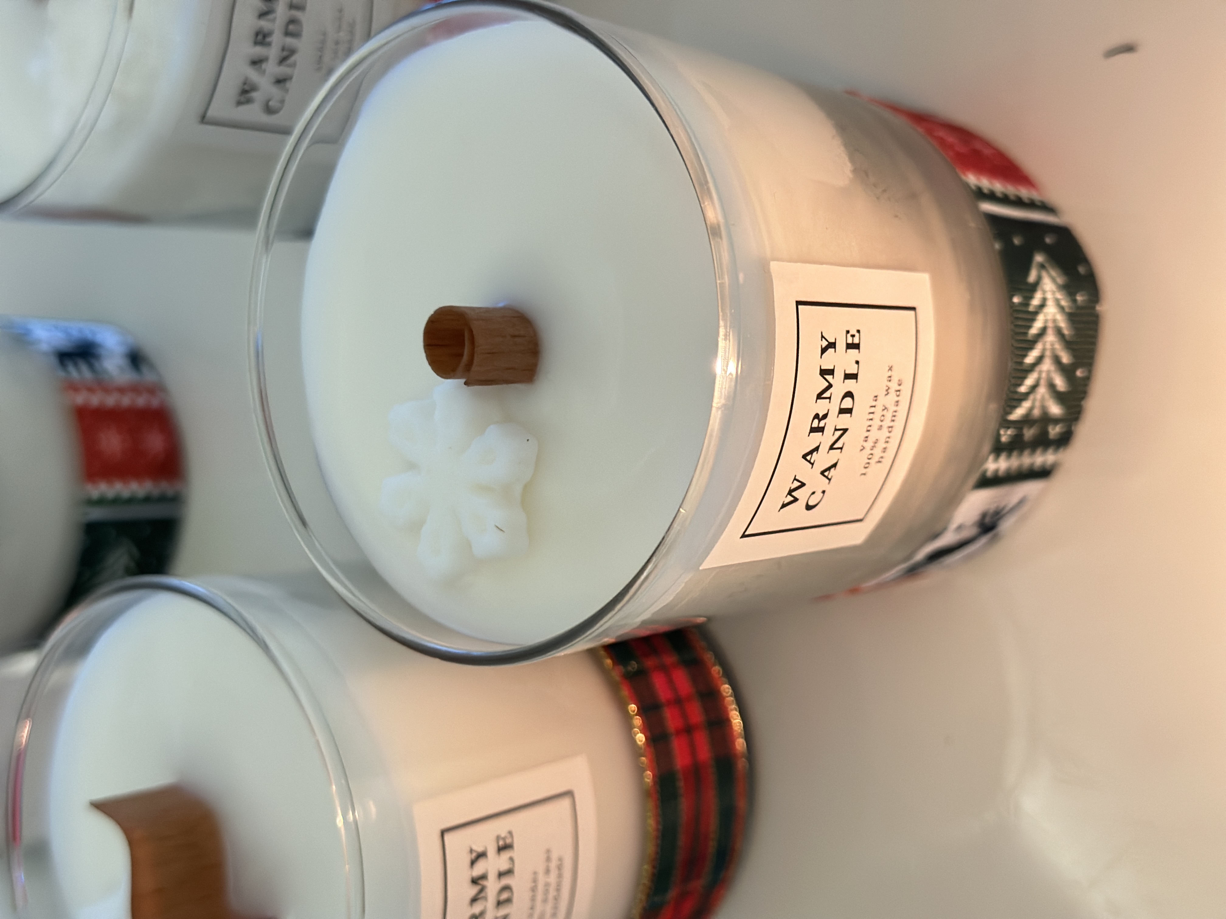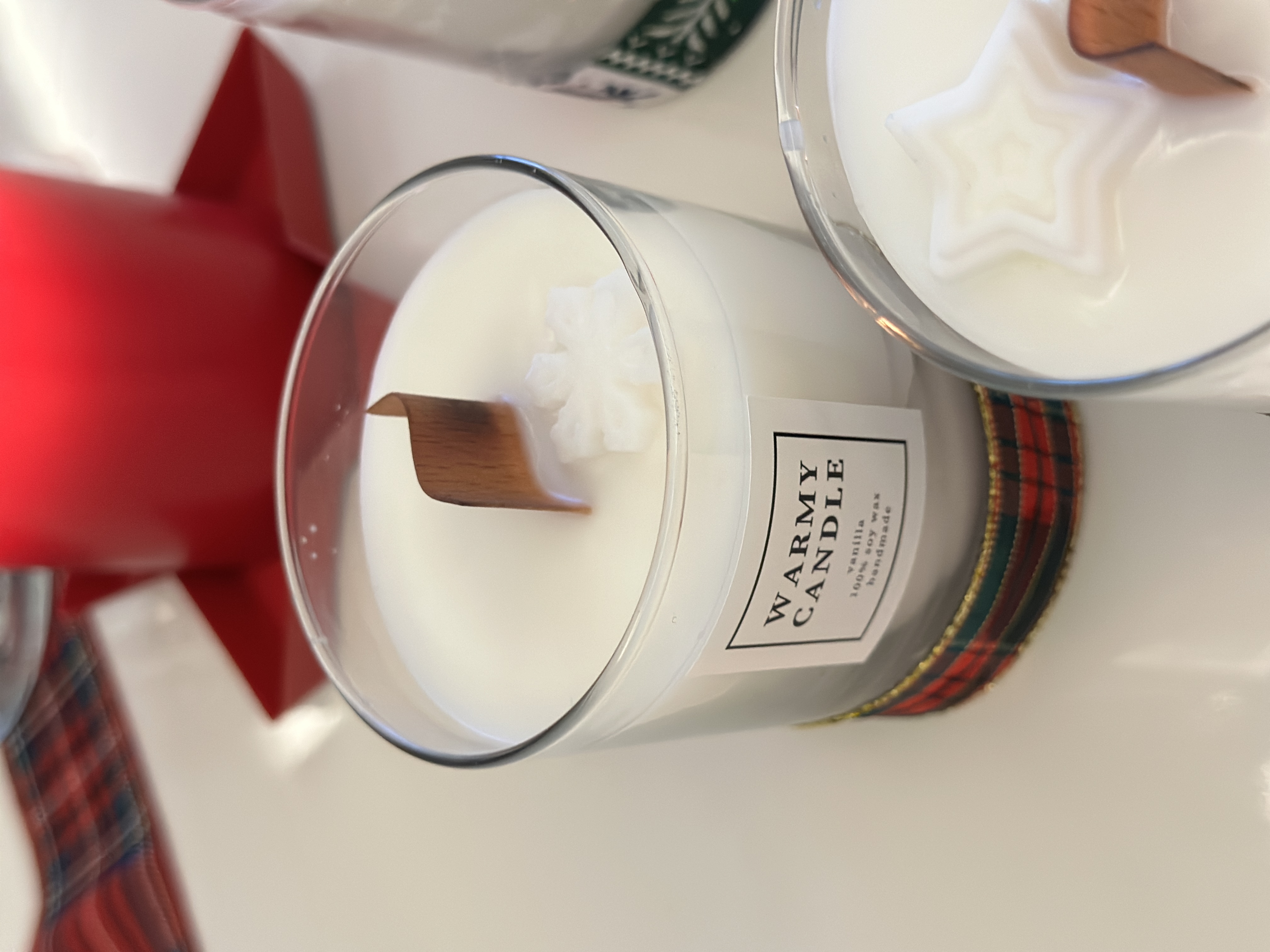 280cc cam bardak içinde ahşap fitilli vanilya kokulu doğal soya mum